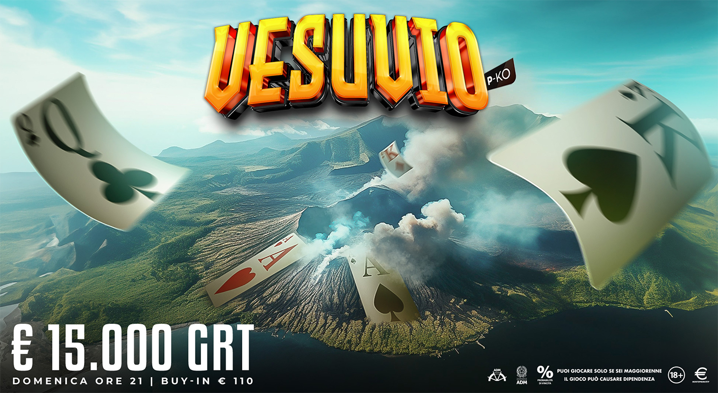 Tutte le domeniche il Vesuvio ha un montepremi garantito iniziale di € 10.000 con buy-in fissato a € 110 e proposto nella nuova versione Progressive KO con bounty da 50€ che cresceranno man mano che eliminerai altri giocatori.