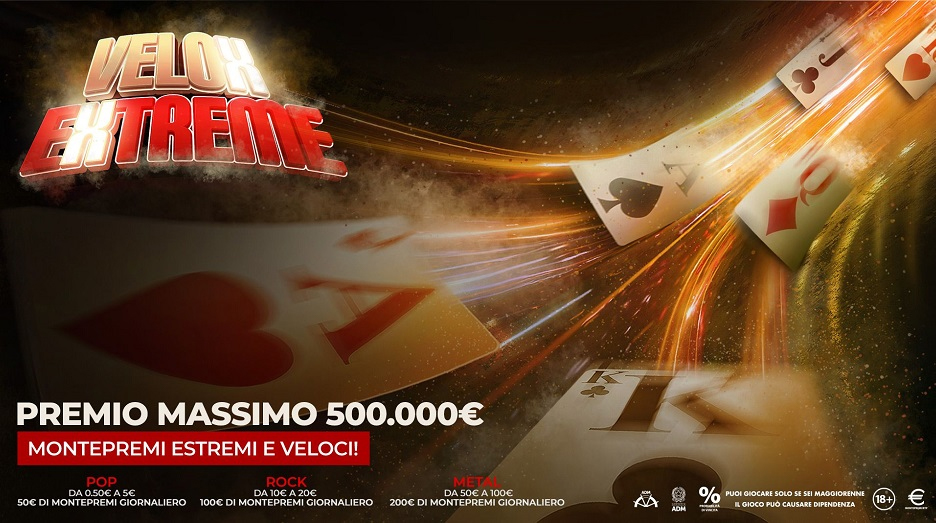 I nuovi sit’n’go Velox eXtreme offrono la possibilità di vincere fino a 5.000 volte il buy-in, in pochissimi minuti.